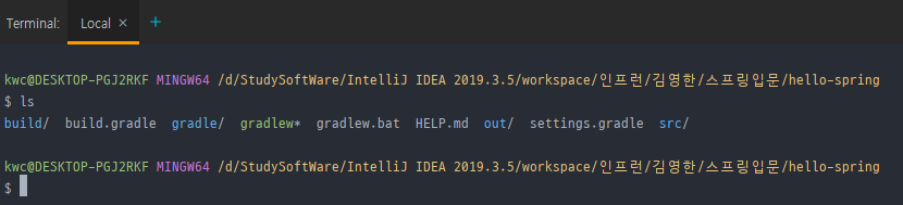 터미널을 열면 프로젝트 루트경로가 뜸