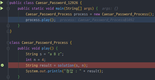 play()라는 메소드를 호출한 main으로 가서 값을 확인할 수 있다.