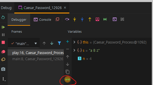 이동후에는 break line에서 했던것 처럼 Variables와 Watch를 이용해 확인하고자 하는 값의 코드를 확인할 수 있다.