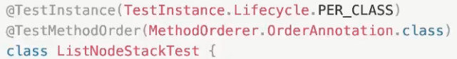 - 하지만 사진과 같이 @TestInstance(TestInstance.Lifecycle.PER_CLASS)를 주면 인스턴스를 클래스 당 한개를 만들겠다는 의미이다.(PER_METHOD는 기본값이라 생략이 가능)
