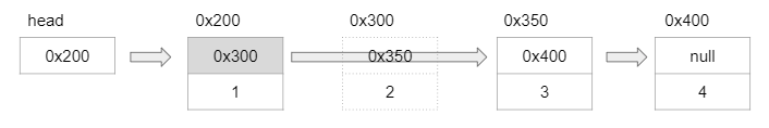 삭제는 간단하다. 삭제하고자 하는 노드의 이전노드가 삭제하고자 하는 노드가 가리키고 있는 주소값을 가지도록 변경하기만 하면 된다. 배열처럼 복사하는 과정이 없기 때문에 처리속도가 매우 빠르다.