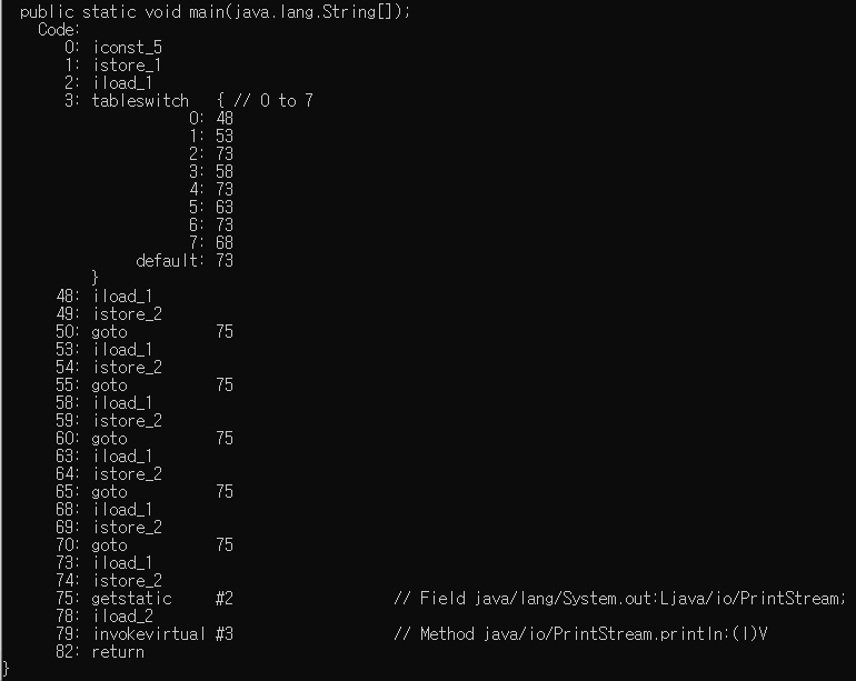 JDK1.7부터 switch의 조건문에 문자열 타입의 변수도 올 수 있다.