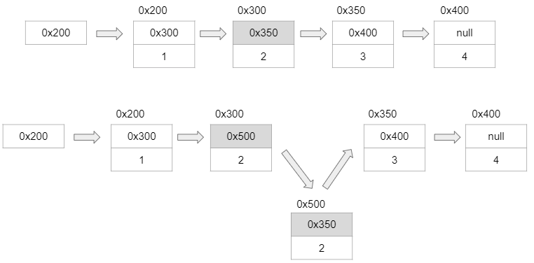 새로운 데이터를 추가할 때는 새로운 노드를 생성한 다음 추가하고자 하는 위치의 이전 노드의 주소값을 새로운 노드의 주소값으로 할당해주고, 새로운 노드가 그 다음 노드의 주소값을 가리키도록 변경하기면 하면 되므로 이것 역시 속도가 매우 빠르다.