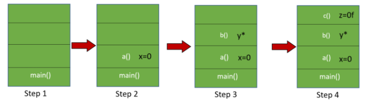 - 메서드가 호출되면 메서드 호출과 관계되는 지역변수와 매개변수를 스택영역에 저장하고, 호출이 완료되면 소멸한다.