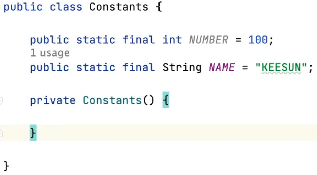 전역적인 상수 사용을 원하면 상수만 모아놓을 클래스를 만드는게 좋다. 또한, private으로 인스턴스 생성을 막는다.