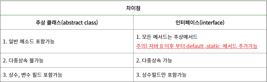 추상클래스 안에서는 인스턴스 변수 생성 가능, but 인터페이스는 불가능
