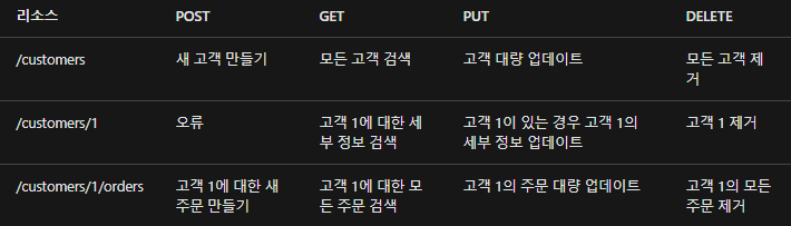 또한, URI를 계층 구조로 구성하는 것이 좋습니다. 예를 들어 /customers는 고객 컬렉션의 경로이고, /customers/5는 ID가 5인 고객의 경로입니다. 개발자는 /customers/{id}에 대한 경로를 정의할 수 있습니다.