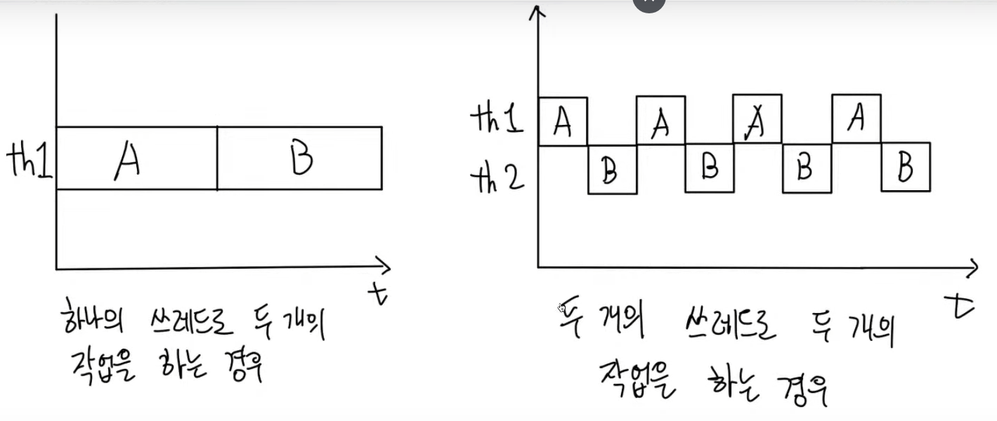 그림만 보면, 멀티쓰레드로 코딩을 해도 시간이 줄어들지 않음