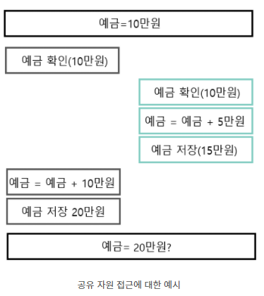 -> 자원을 공유하지 못하면 교착 상태가 발생합니다. 여기서 자원은 배타적인 자원이어야 합니다. 배타적인 자원은 임계구역에서 보호되기 때문에 다른 프로세스(쓰레드)가 동시에 사용할 수 없습니다.
