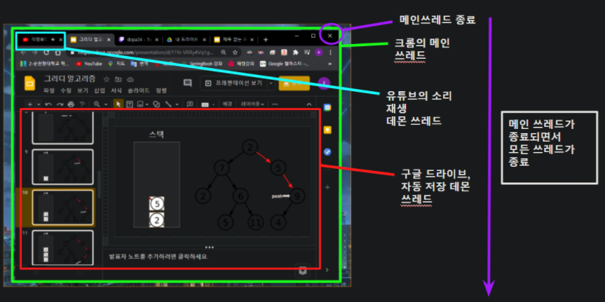 그 번갈아 가면서 수행하느게 워낙 빠르기 때문에 각자 병렬로 실행 되는 것처럼 보일 뿐이다.