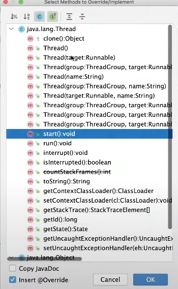 - run() 메소드 말고도 다른 메소드를 오버라이딩 해야 할 필요가 있을 때 Thread를 상속받는다.