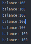 위의 코드에서 문제를 해결하는것은 간단합니다. withdraw() 메소드에 synchronized 키워드를 사용해서 임계구역으로 지정해주면 더이상 음수값이 나타나지 않습니다.