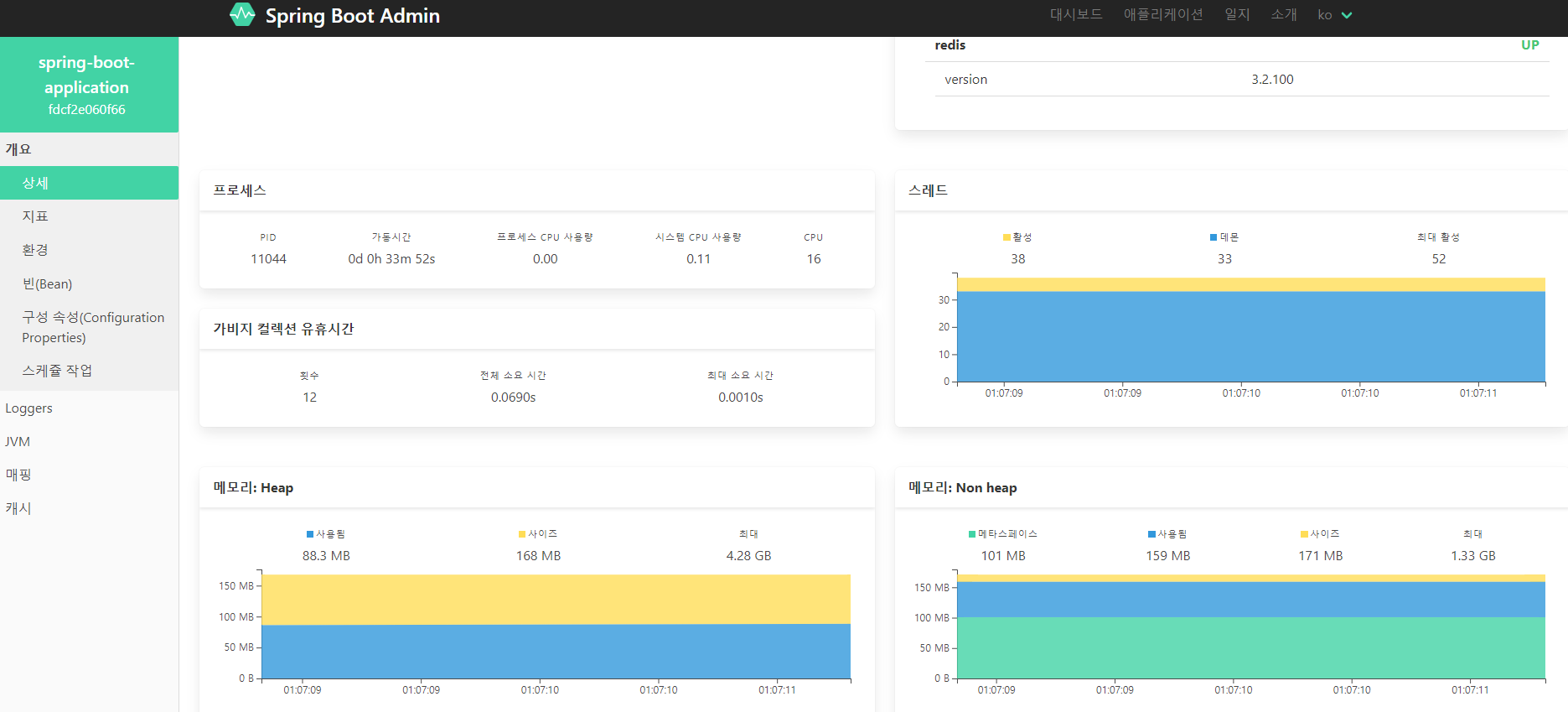 JSON 형식 혹은 XML로 확인할 수 있다. 하지만 GUI로 보고 싶다면 Actuator 기반 UI인 Spring Boot Admin을 사용하면 된다. (오픈소스)