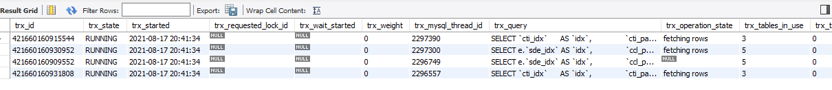 - 어떻게 판단했냐면 프로그램이 실행중이 아니였는데도 특정 row의 trx_query가 빈값이였다.