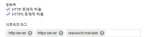- 모든 아이피에 대한 3306포트를 오픈하는 규칙에서 입력한 태그(realworld-mariadb)