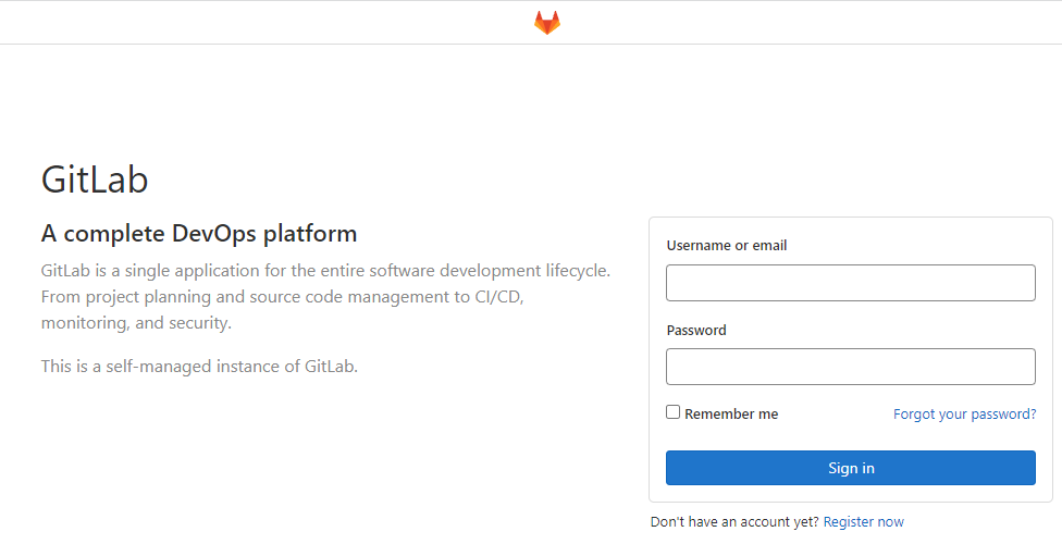 도커를 실행한뒤 http://{서버 IP주소}:{지정포트번호}로 접속하면 위와 같은 gitlab 접속 화면을 볼 수 있습니다.