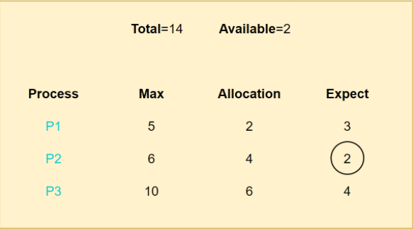 만약 처음에 2개의 자원을 P1이나 P3에 할당했다면 기대 자원을 충족할 수 없기 때문에 작업을 마칠 수 없습니다.