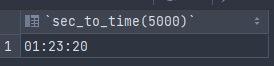 select sec_to_time(5000); -- 5,000초를 시간으로 환산