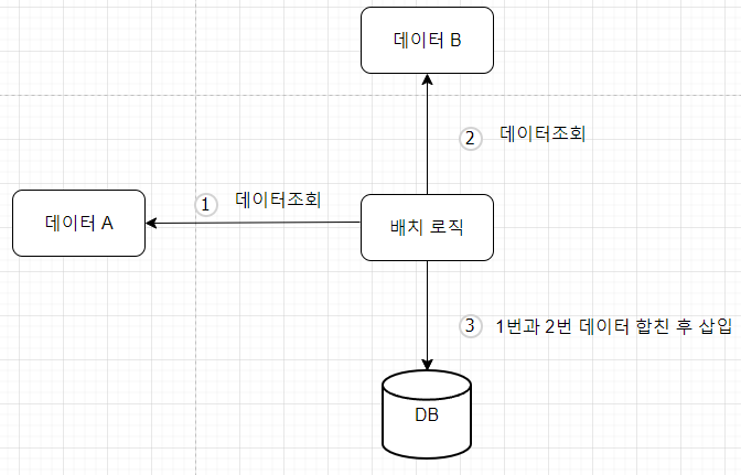 1번과 2번에서 데이터를 조회 하여 데이터를 합친 후 DB에 저장하는 단순한 프로세스 였습니다.